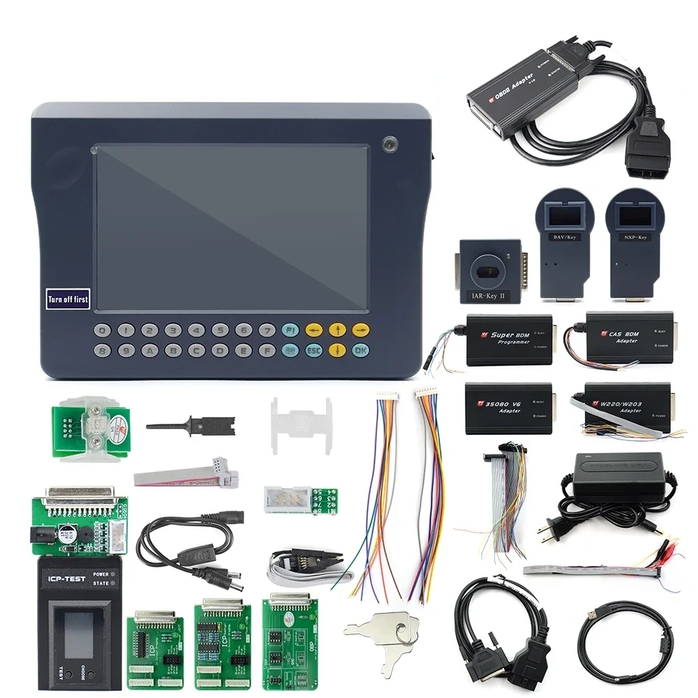 صفحه نمایش لمسی LCD هفت اینچی با وضوح بالا، رابط کاربری آن را آسان می کند. با کار با انواع مختلف آداپتور، می توانید به راحتی به تصحیح کیلومتر شمار، رمزگشایی صدا و بازنشانی کیسه هوا، بازنشانی ECU موتور، IMMO، برنامه ریزی کلید برای Benz و BMW و غیره دست یابید. این برای انواع پردازش داده ها مانند اتصال OBD، لحیم کاری داشبورد، CAS-BDM کاربردی است.